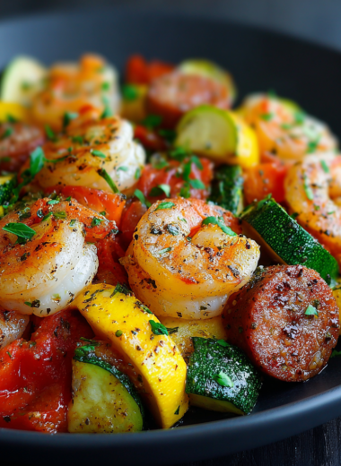 This vibrant dish of zucchini, squash, sausage, and shrimp brings a delightful harmony of flavors and textures, making it an ideal centerpiece for a summer gathering or a cozy dinner at home.