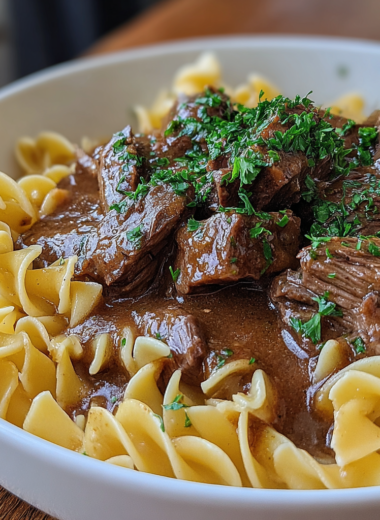 This tremendous crockpot beef tips & noodles recipe boasts tender, melt-in-your-mouth beef simmered in a rich, savory sauce, making it an ideal cozy meal for gatherings or family dinners that warms both the heart and palate.