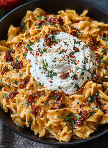 Rich and savory Sun-Dried Tomato Pasta paired with creamy whipped ricotta creates an irresistible harmony of flavors and textures, making it an ideal dish for cozy dinner gatherings or special occasions.