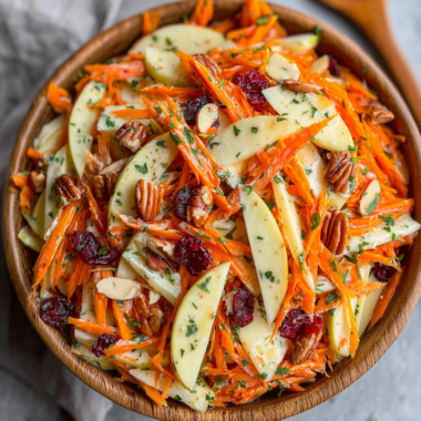 This vibrant Carrot Apple Salad combines the crisp crunch of fresh carrots with the sweet juiciness of apples, creating a delightful medley of flavors and textures that makes it an ideal choice for a light lunch or festive gathering.