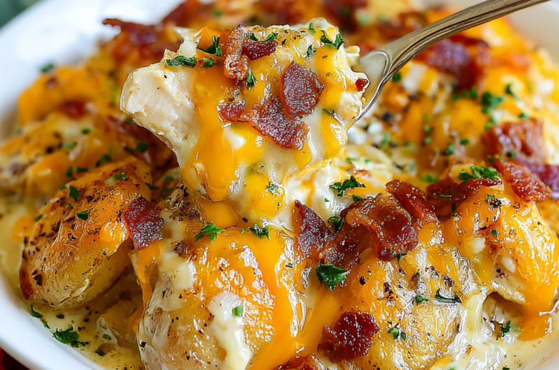 Creamy Chicken Bacon Ranch Potato Casserole Delight