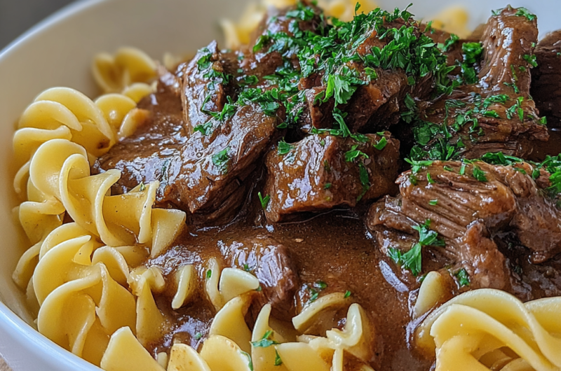 Savory Crockpot Beef Tips and Noodles Recipe